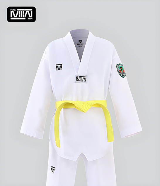 El dobok blanco de MAXWIN representa la pureza, la disciplina y el respeto que son fundamentales en el Taekwondo.