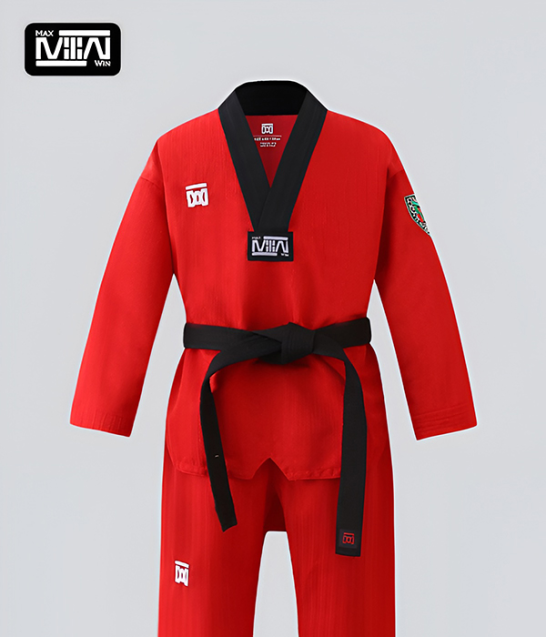 Dobok rojo completo cuello negro MAXWIN – La esencia de la fortaleza