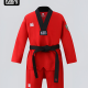 El dobok rojo completo cuello negro de MAXWIN combina elegancia y sobriedad, siendo un uniforme premium ideal para practicantes, instructores, equipos de exhibición y maestros.